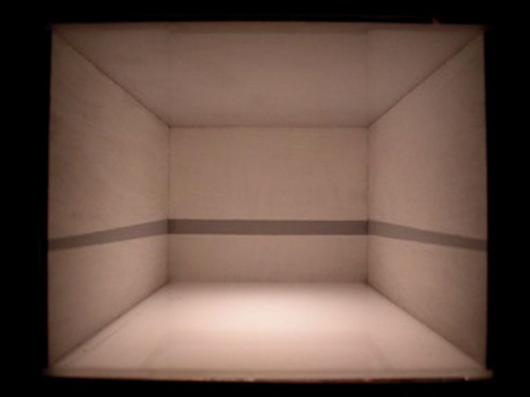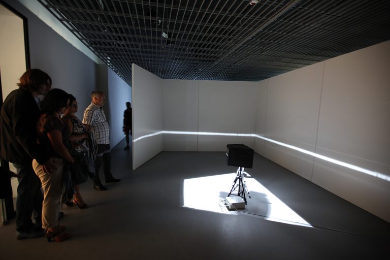 The starting point for this work was a reflection on the role of the horizon line in our spatial orientation. For the use of the exhibition at Elektrownia – Mazovian Centre for Contemporary Art in Radom a special environment work was built consisting of three alcoves. Inside them, viewers would see horizon lines moving with the lapse of time. This work is complemented by a book which documents the artist’s studies. Jenny Brockmann has also created a sort of small laboratory which enables us to experiment with horizon lines at various altitudes and in various lighting. American sculptor, Robert Morris says these words about human spatial intelligence: (…) for us space is equipped with two features – it can be close and distant, our own bodies – with an intimate awareness of weight and balance, of what is higher and what is lower, of movement and stillness, and a general awareness of bodily boundaries of behavior in relation to all these kinds of awareness.